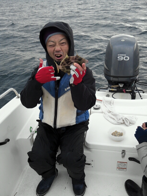 カワハギ釣りに夢中になっている間に熊船長はイカ釣り。