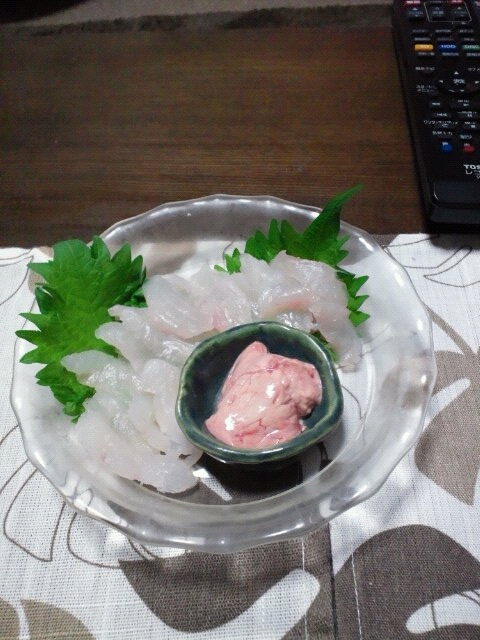 カワハギの刺身肝あえ。